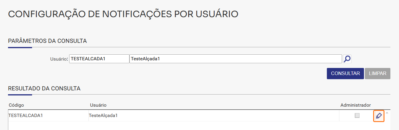 1. Após ativar a tarefa é necessário configurar qual usuário será notificado: Segurança / Administração / Mural de Avisos / Notificações / Por Usuário.