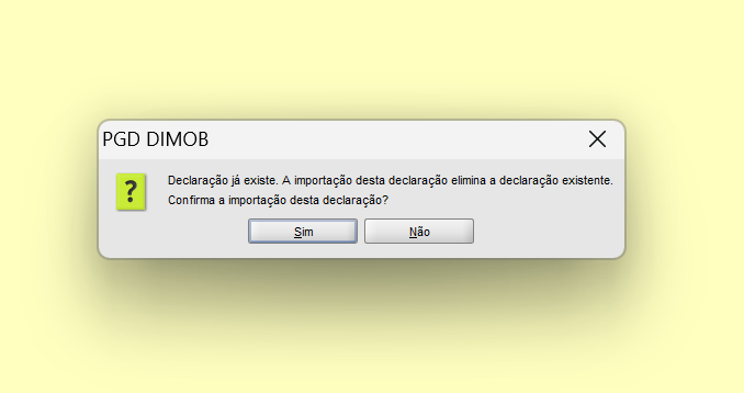 Atenção! Caso já tenha importado algum arquivo e tente enviar outro, ocorrerá a mensagem de que a importação desta declaração elimina a declaração existente, clique em Sim caso queira confirmar: